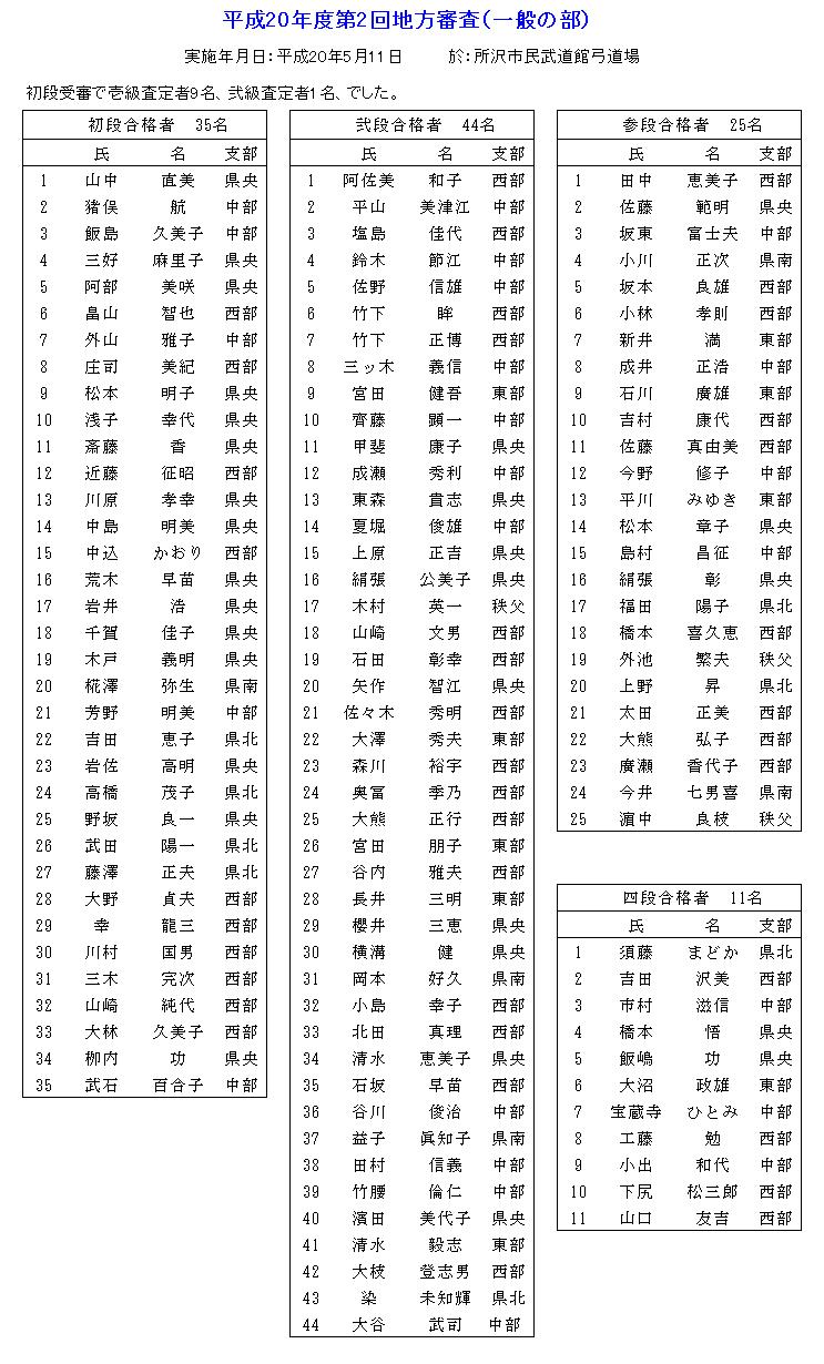 | 平成20年度地方審査合格者 | ||||||||||||||||||||||||||